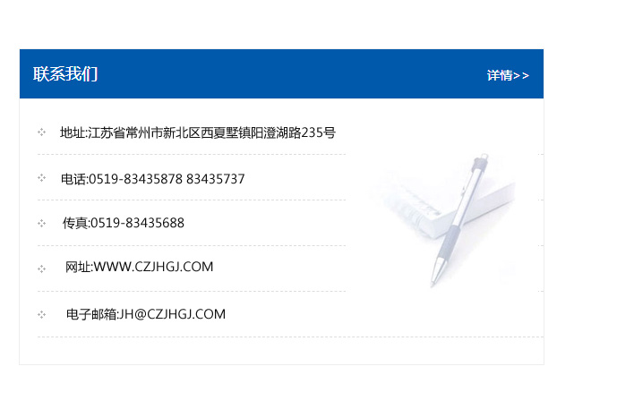 地址:常州市新北區友邦商務大廈1幢16、17層  電話:0519-85101652  傳真:0519-85112595  郵編:213022  網址:www.cz-jiayue_cn.74lp.com  郵箱:xiajifengaa@163.com